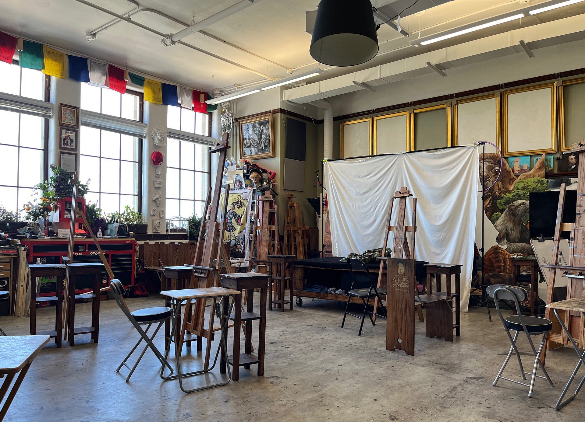 When you think of a “real artist studio,” what do you think of? Maybe you imagine a place with easels, drawing tables and art supplies everywhere, with little creative touches and inspiring bits and bobs all over the walls.